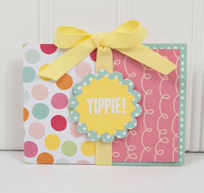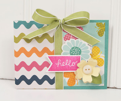 “When I first got into card making, these were some of the first “fun fold” cards I made, and they’re still my go-to cards for fast and easy gift card giving. They are tiny, but oh-so-cute, and people love opening them and seeing the fun gift card inside.” – Tiffany Hood, Pebbles Design Team Member.
