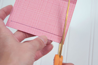 Then on the fold, cut with scissors about ½ inch down from the fold, and ¼ inch in from both sides.