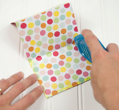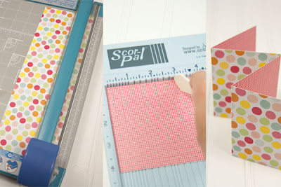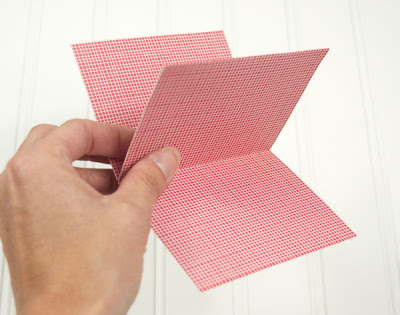 First, cut a piece of 12” x 4” cardstock. Score it at 3”, 6” and 9”, and accordion fold it.
