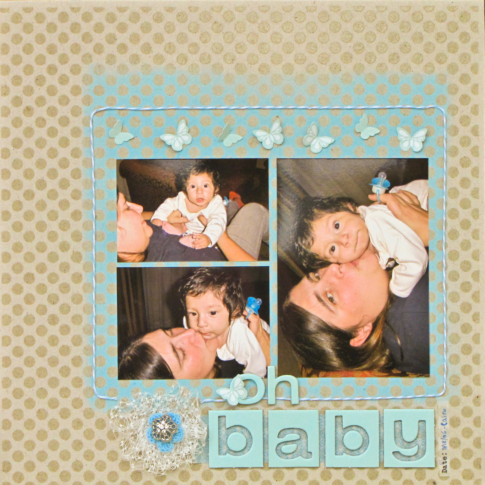 I love the Frugal Finds feature at Practical Scrappers, it is always play time and creative time, and the results are amazing! For the latest feature we had to use mesh bags and that was an easy one for me, as lots of the produce I can find here comes in mesh bags. For this layout I chose baby pics -probably the fact that my little girl is growing so fast and her front teeth are loose (yet another milestone) influenced the choice of pics for this layout.
