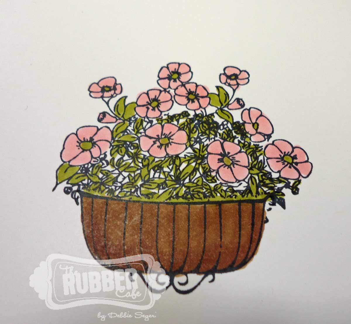 Then I used some masking paper and masked the image so I could stamp the flowers on top. This makes the flowers look like they are coming out of the basket!