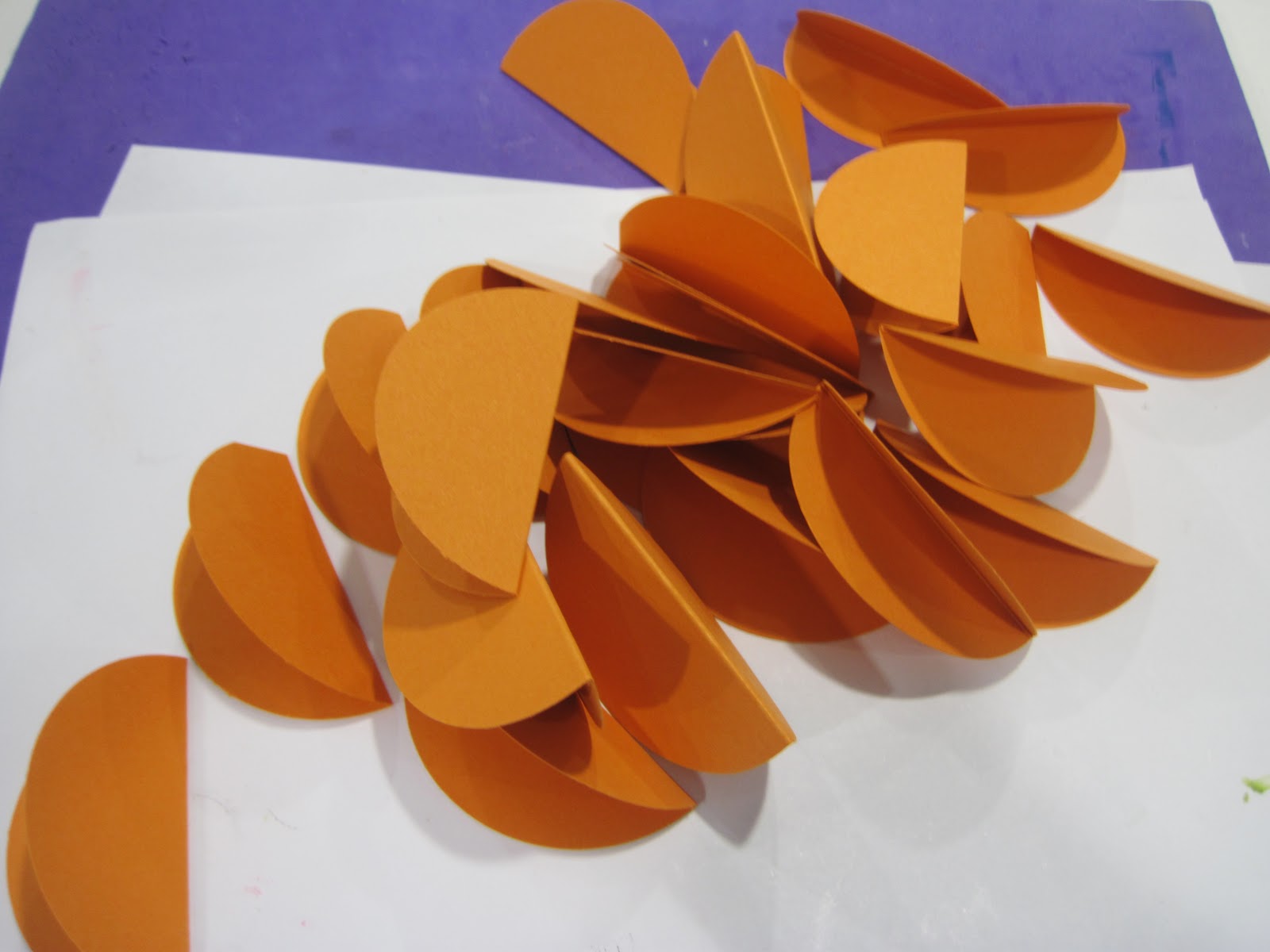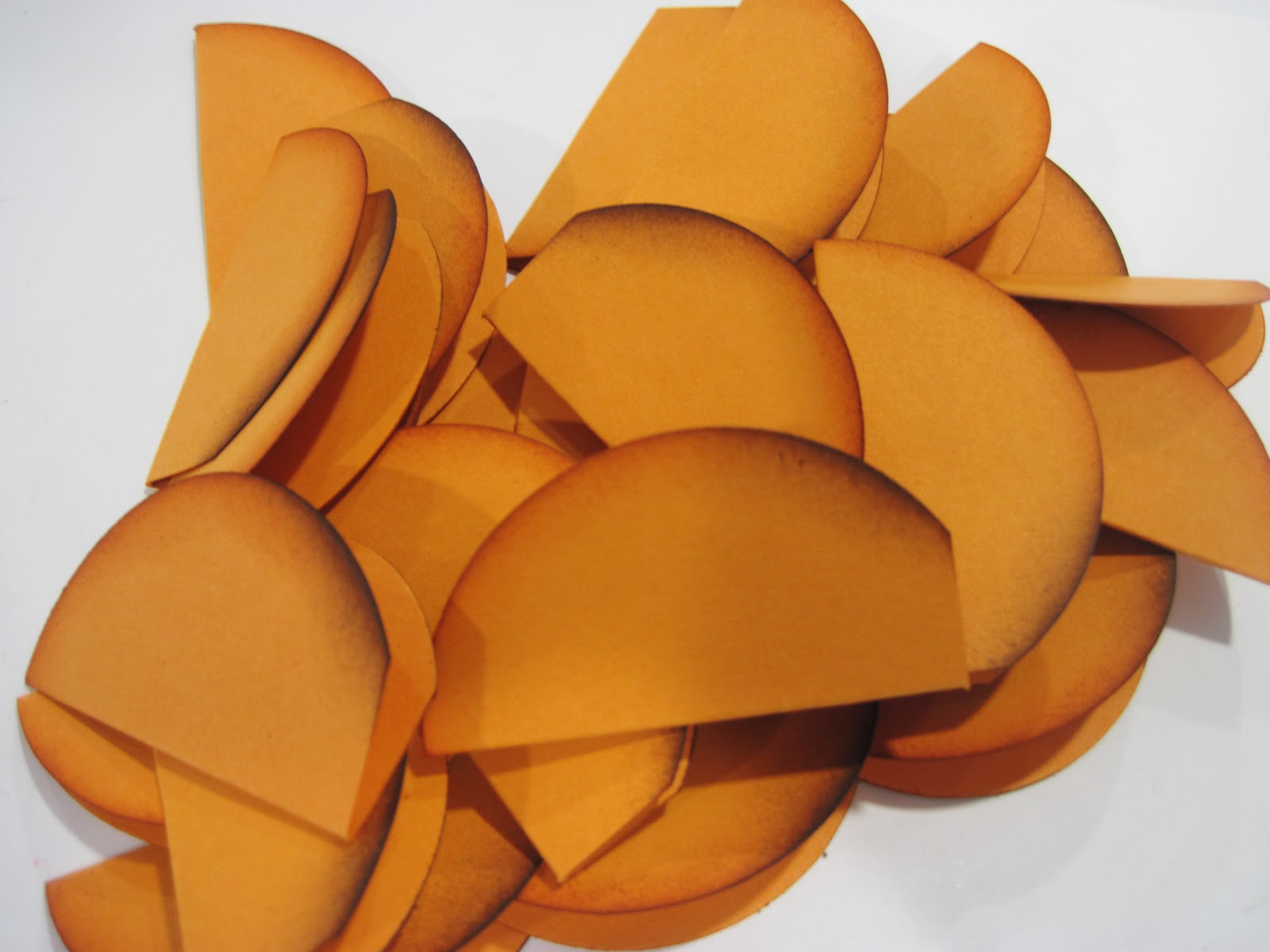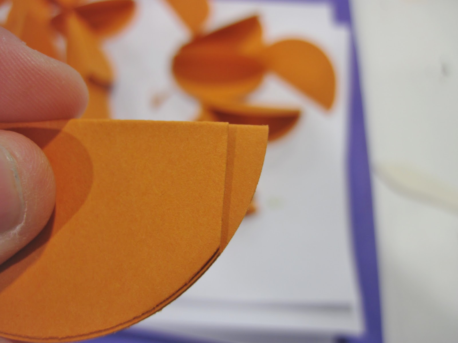 Adhere half of the circles together and then set it aside and start from two again. Adhere the rest of your circles together. Now you have two pumpkin halves.