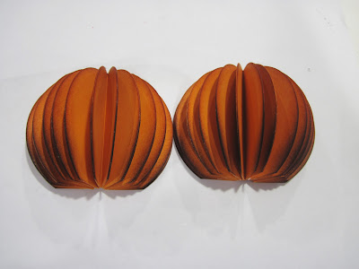This is what it looks like after you’ve adhered two of the circles together. Make sure you adhere all of them with the flat ends matching so your pumpkin will stand up.