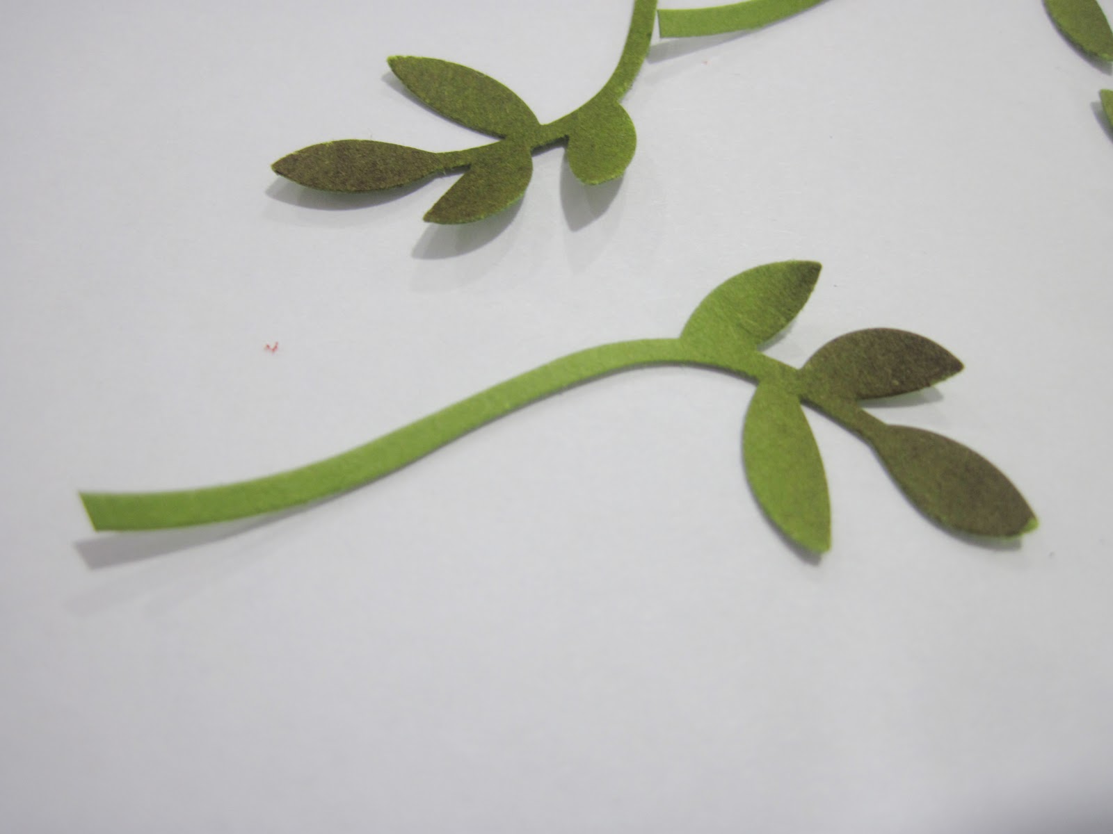 I took a scrap of Lucky Limeade cardstock and randomly sponged two areas first with Old Olive ink and then with Chocoalte Chip ink. However, unlike me, make sure to sponge both sides. This will give your leaves a pretty varigated color after they are punched.