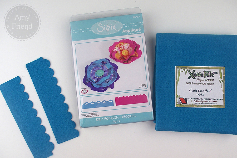I used the die to cut two strips of bamboo-rayon blend Xotic Felt in Caribbean Surf provided byCommonwealth Felt.I used the die to cut two strips of bamboo-rayon blend Xotic Felt in Caribbean Surf provided byCommonwealth Felt.