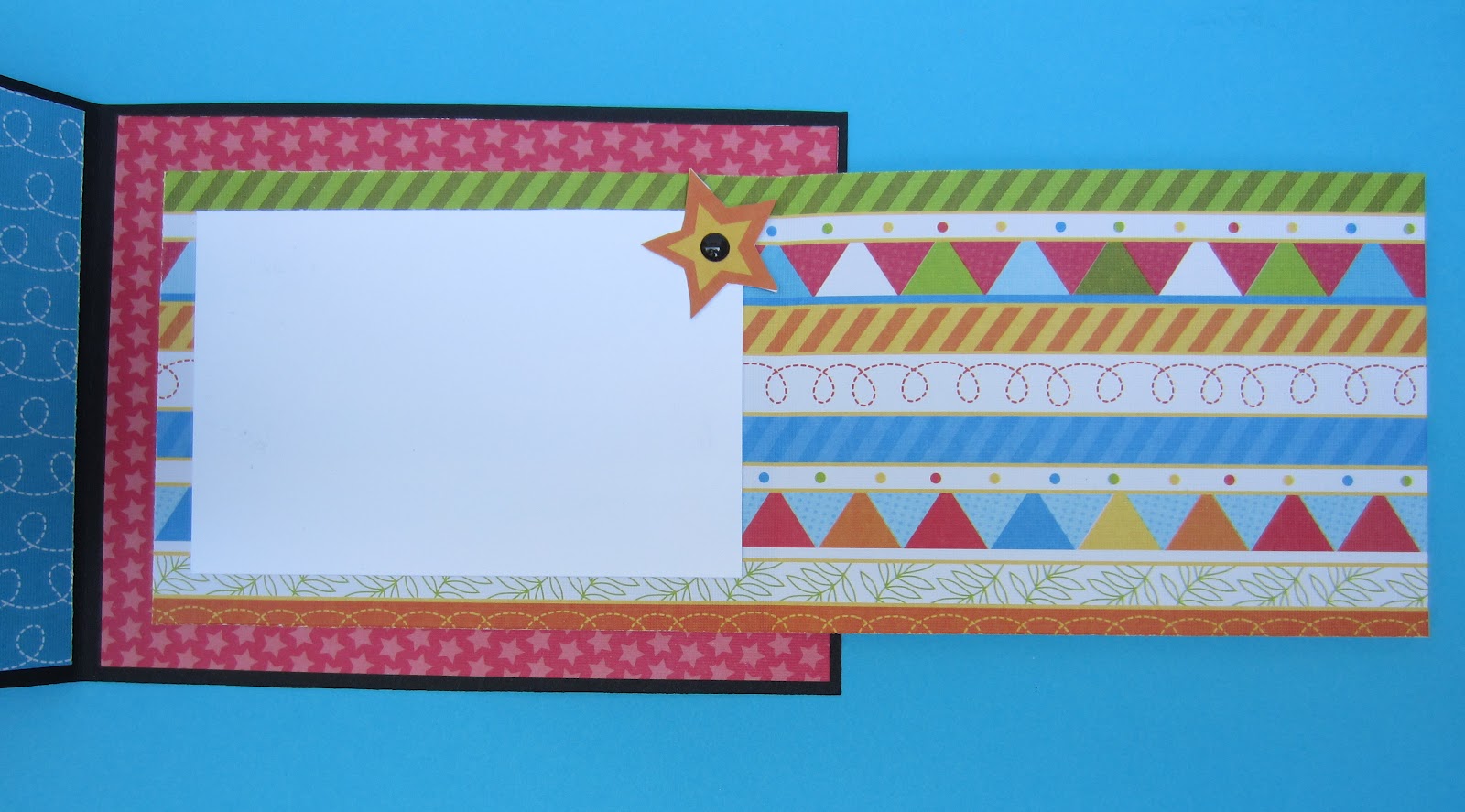All you need is a base and then patterned papers cut to the sizes you wish to layer. Your base should be 11″ length X 4.25″ height which is folded in half. Then you take the top cover and fold that in half again. This will leave you with some of the “inside of your card showing.” I then cut patterned papers down to the size that I wanted for each location.