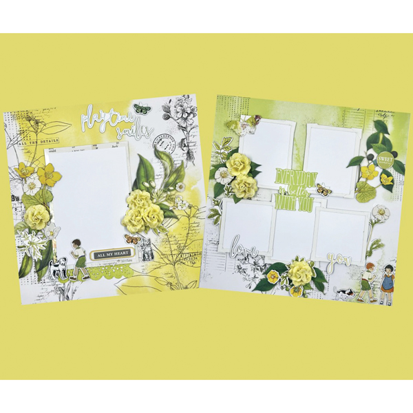You will use ephemera, templates, lace, and more to create a two-page layout featuring sunflowers and butterflies. You will be provided optional verses to use. To add value, we are including additional 12 x 12" yellow and brown cardstock along with a lot of extra ephemera, so you can make additional coordinating pages (or cards) later, if desired.
