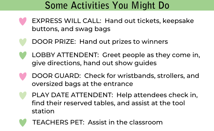 looking for full time helper for running make and take in booth, part time for setting up and take down (2-3 people). trading in merchandise or cash paid available.