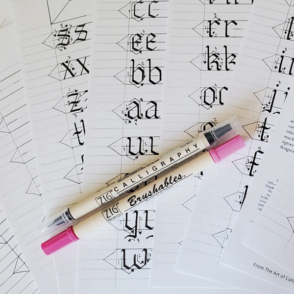 A lovely hand-addressed card or envelope is a lost art! Add a personal touch to holiday cards, wedding invitations, or any correspondence with traditional calligraphy. This technique-based class will introduce you to Old English-style calligraphy. This is not italic, but rather the more traditional style (think newspaper mastheads). The lowercase alphabet will be practiced, with like letters shown together so you can begin to master the basic skills needed to form letters. You will receive a double-ended, felt-tip marker to keep (great for left or right-handers) and practice papers with guides. This class is fast-paced but fun!