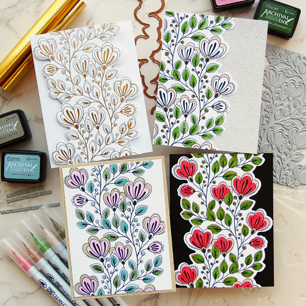 Create four distinct A2 cards using multiple techniques. In the class, you'll design four A2-sized cards using a coordinated plate, die, and stencil set. Three cards will feature the BetterPress method, while two (including a bonus card) will showcase the Glimmer Foiling process. Techniques include Zig Pen coloring, ink application, and foiling for a polished finish. You will receive the plate, dies, and stencil set – valued at $45 – to use during class to keep for future projects. Envelopes are included.