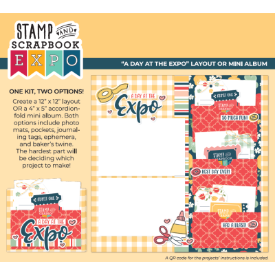 Create a fun, 12 x 12" layout or a 4 x 5" mini album—all with the same products! You can use the yellow check paper for the base of a layout, or you can use the cutting guides on the back of the paper to create the base for an accordion-fold mini album. You choose! Either way, each project highlights pockets, tags, photo mats, and super-cute ephemera!